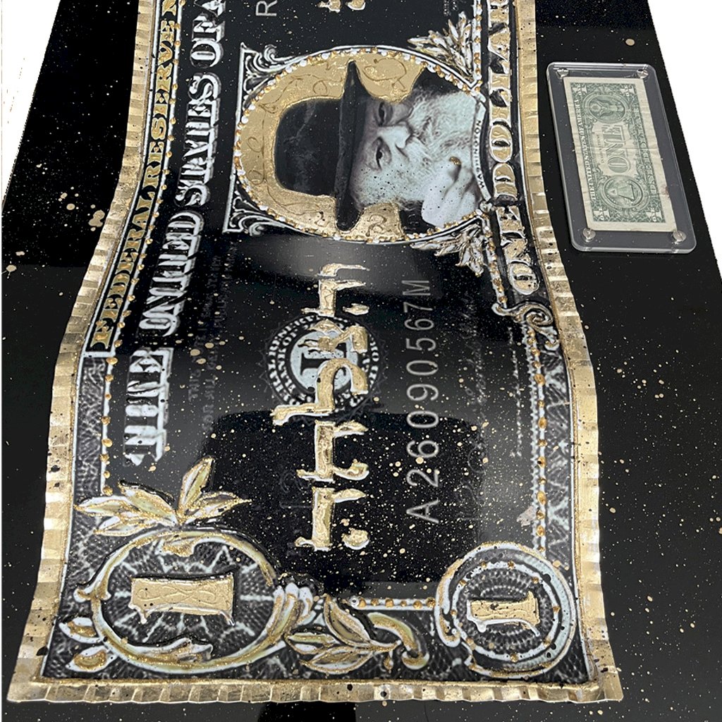 - Made of aluminium twisted - painting 3D - Golden leafs - Dollar under plexiglass removable - Hook at the back - Certficate of origin