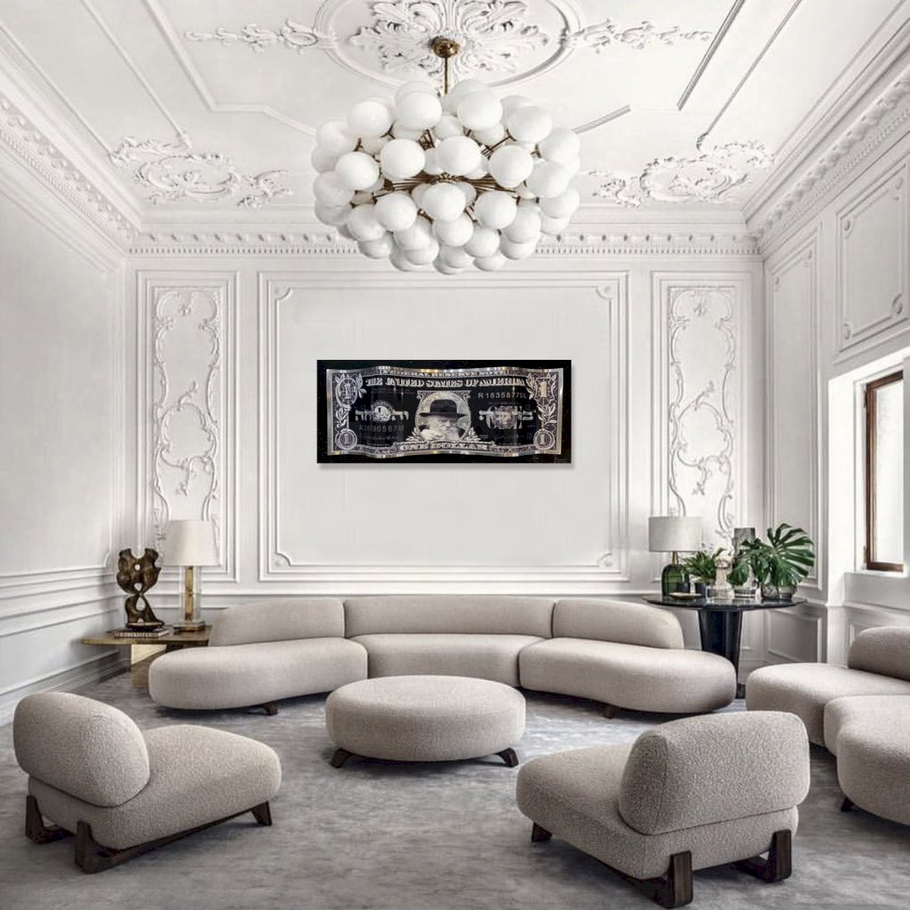 - Made of twisted aluminium - Silver leafs - Painting 3D - Black panel under the dollar - Cable at the back ready to hang up - Certificate of origin