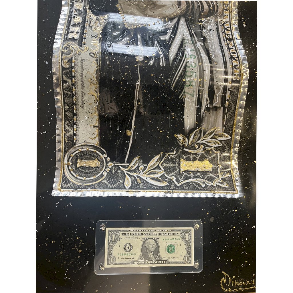 - Made of aluminium twisted - painting 3D - Golden leafs - Dollar under plexiglass remocable - Hook at the back - Certficate of origin