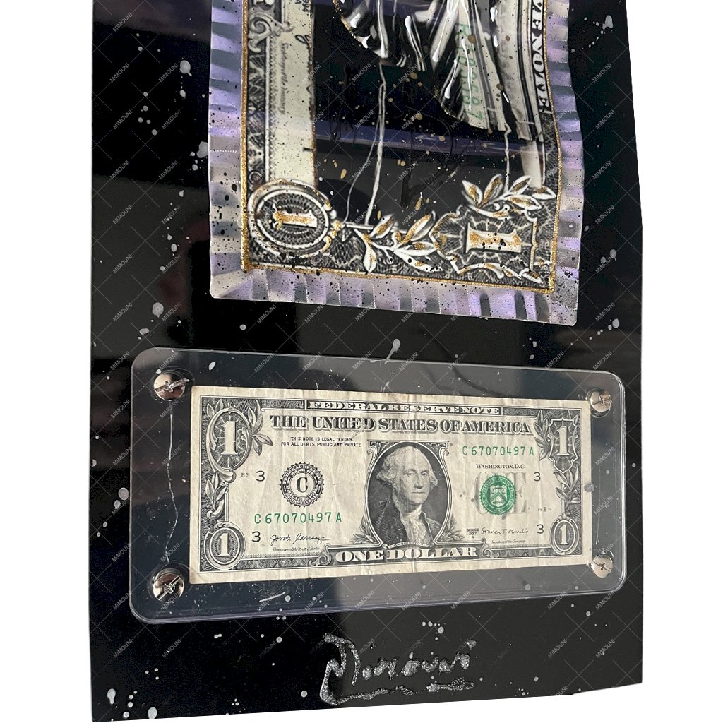 Réalisé en aluminium ondulé - Feuilles d'or - Peinture 3D - Plaque amovible pour insérer un dollar - Cable à l arrière en cas d'accroche - Certificat d'authenticité