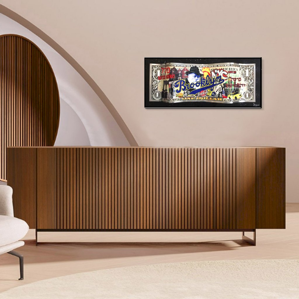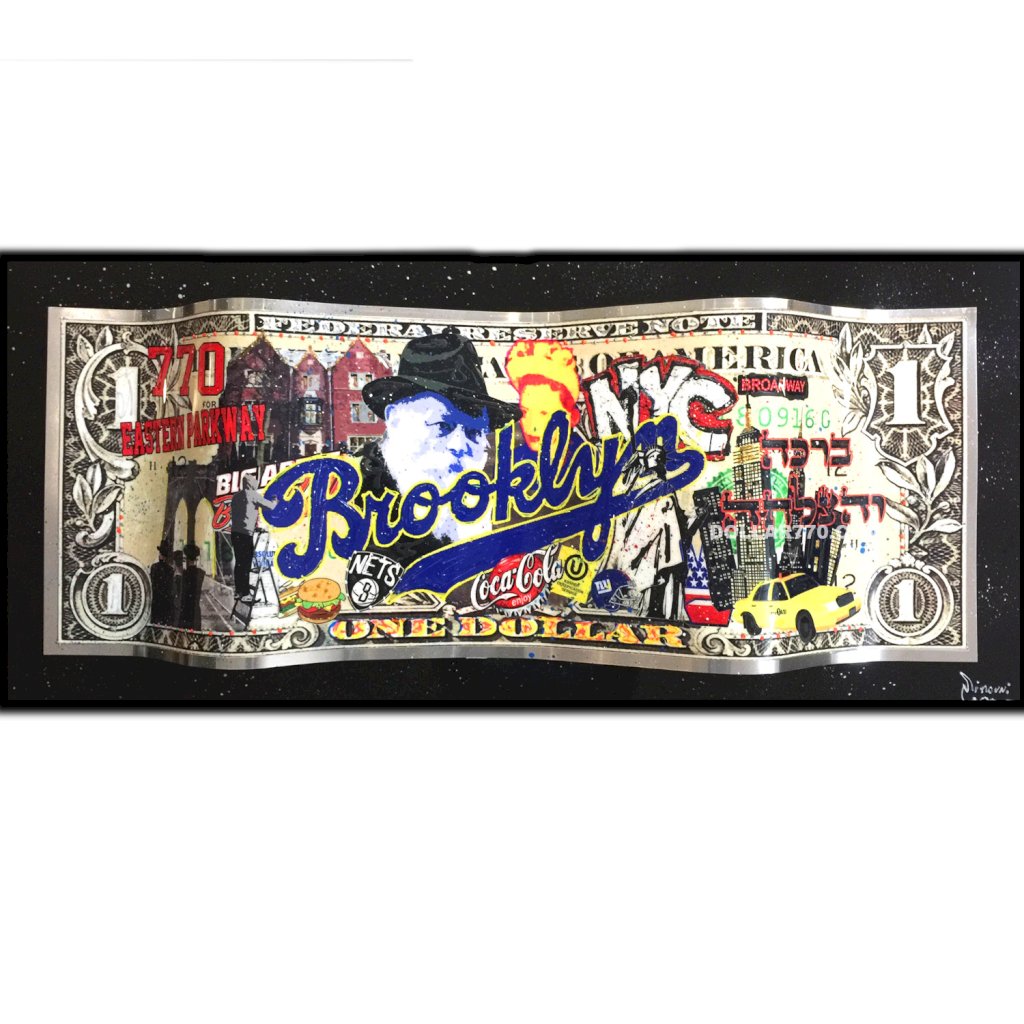 - Réalisé en aluminium ondulé - Patine à la feuille - Peinture relief - Plaque sous le dollar - Cable d' accroche à l arriéré - certificat d'authenticité